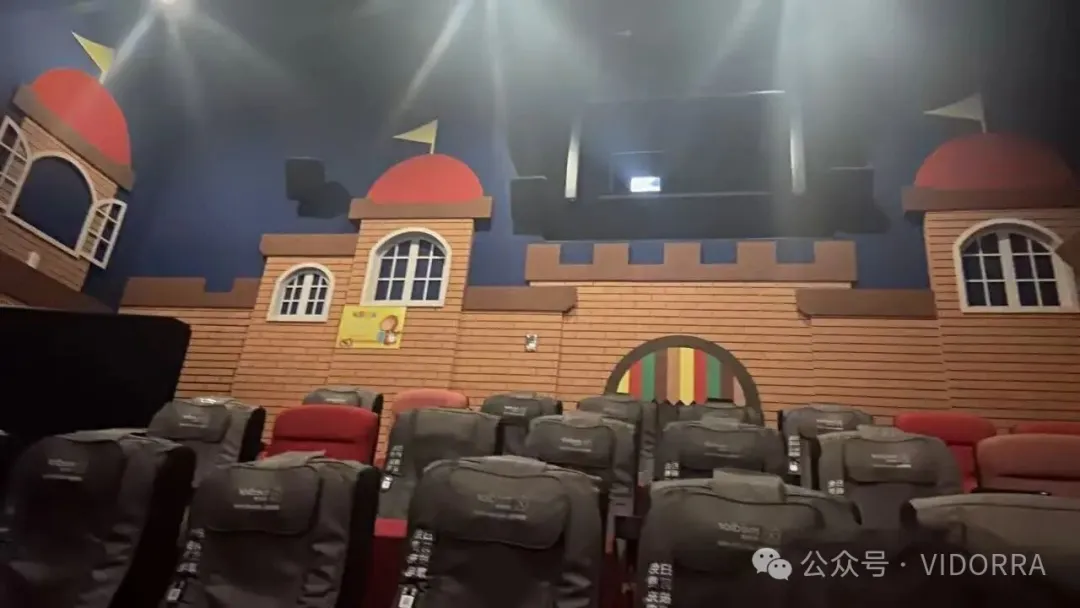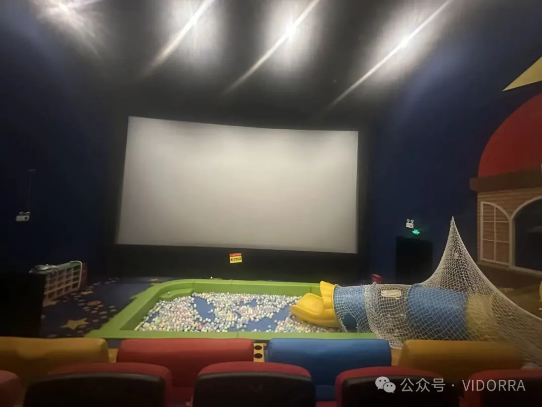 检票员送了我一杯可乐,我走进观影厅,这个是一个特殊的儿童厅,有四十九个座位,颜色比平常的观影厅要活泼,充满童趣,有滑滑梯和海洋球,但是空荡荡的,一个人也没有。