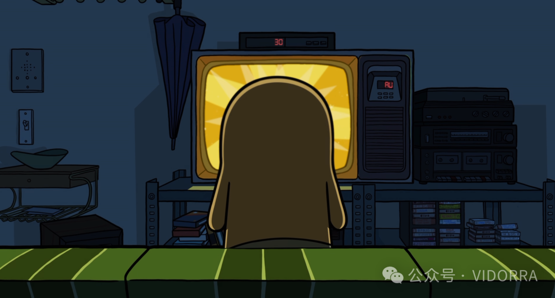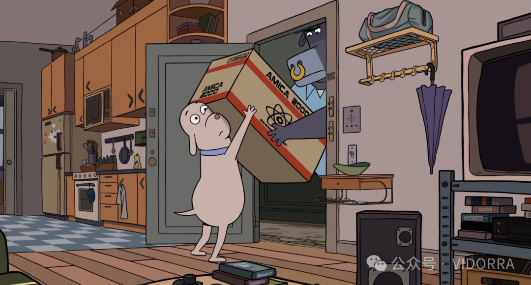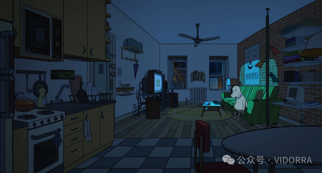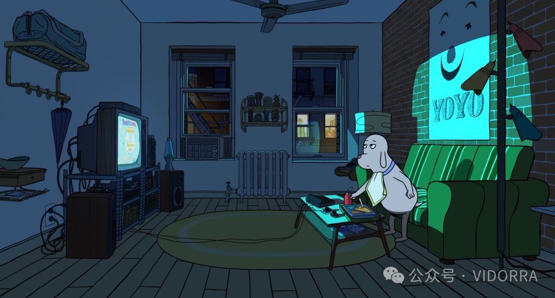 电影没有片头,没有旁白,画面直接切入:一只黄色的小狗,独自坐在沙发上,玩着游戏机。