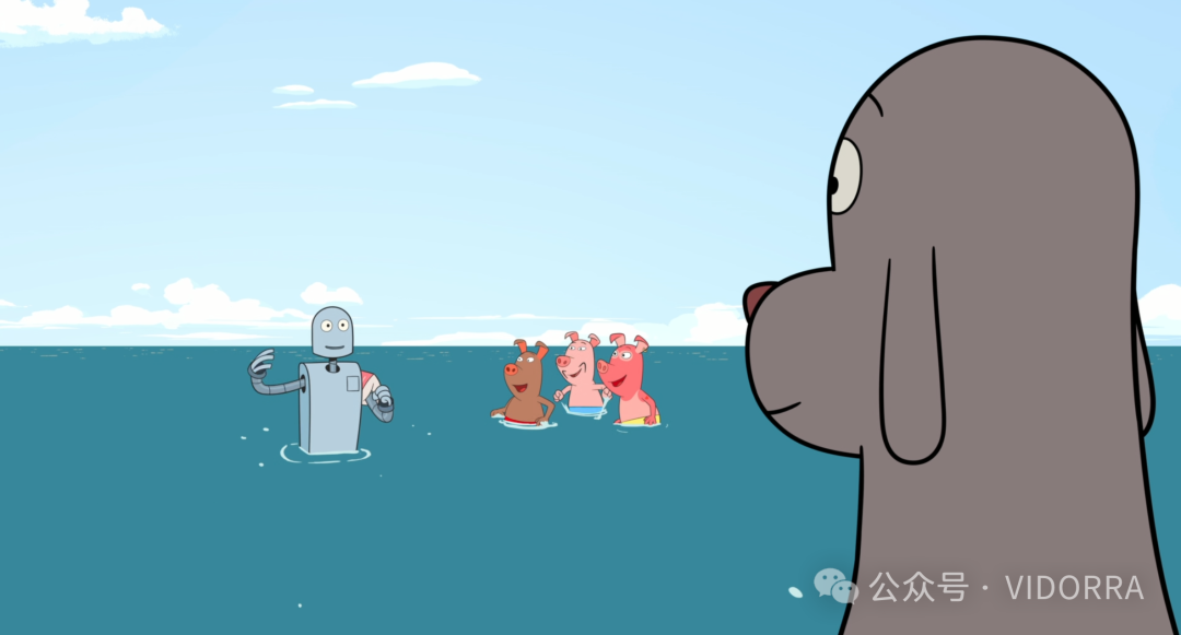 小狗买下机器人的那一刻,就已经埋下了失去的伏笔。并不是因为后面的海水,不是因为机器人生锈,而是因为机器人本质上就是一个商品,一个消费品,一个有着使用期限的存在。即使没有海滩那场意外,机器人也会在某一天因为老化、损坏、淘汰而消失。